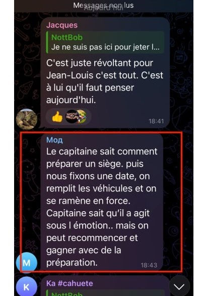 Le mouvement a pris fin samedi 25.11.2023 au soir, mais l'envoi des messages sur le groupe Telegram a cependant continué.